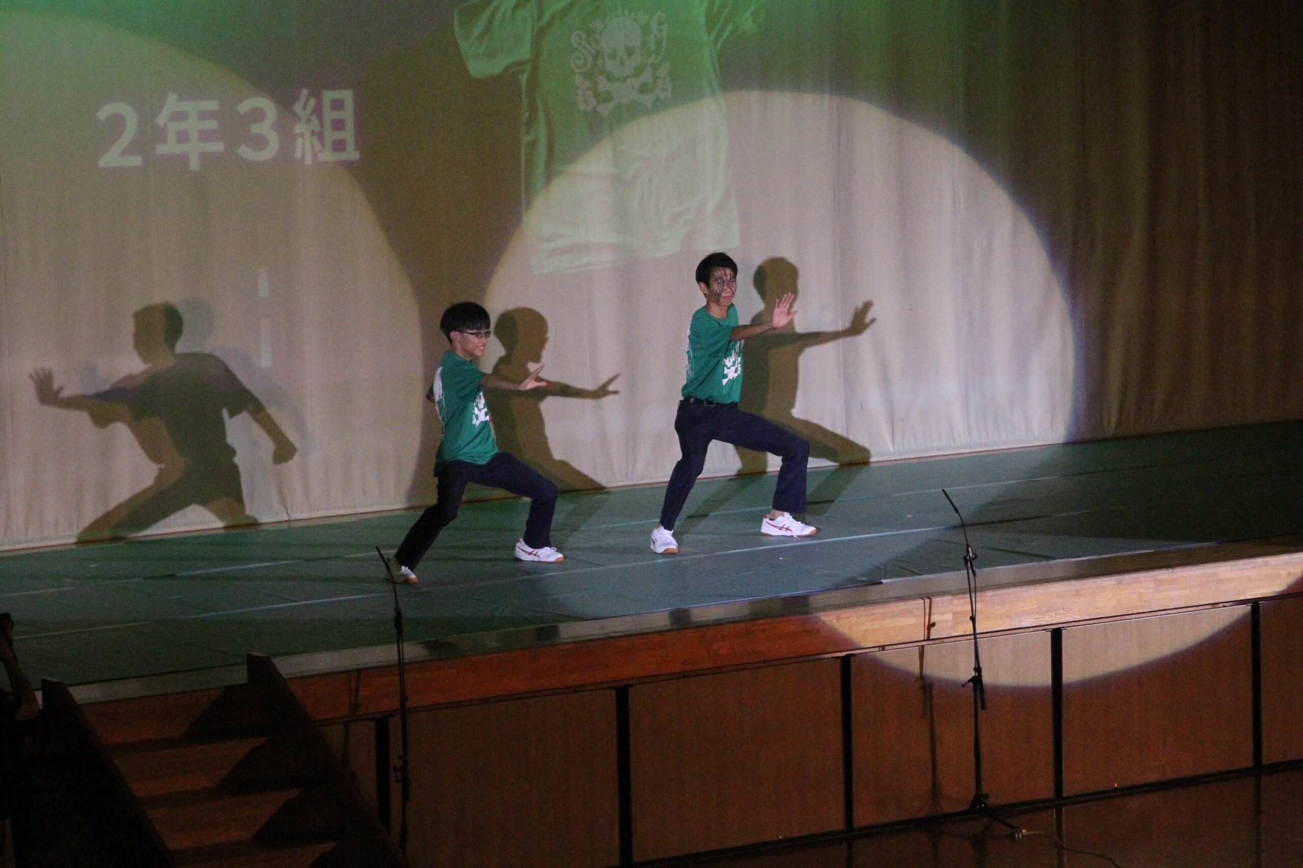 クラスTシャツランウェイでは各クラスの代表がクラスTシャツを身につけステージを歩き、パフォーマンスを行いました。どのクラスも興味深いパフォーマンスを行い、会場を沸かせました。また、CM発表でもそれぞれのクラスの特色を活かしたCMを作成し、蒼碑祭の始まりを盛り上げました!