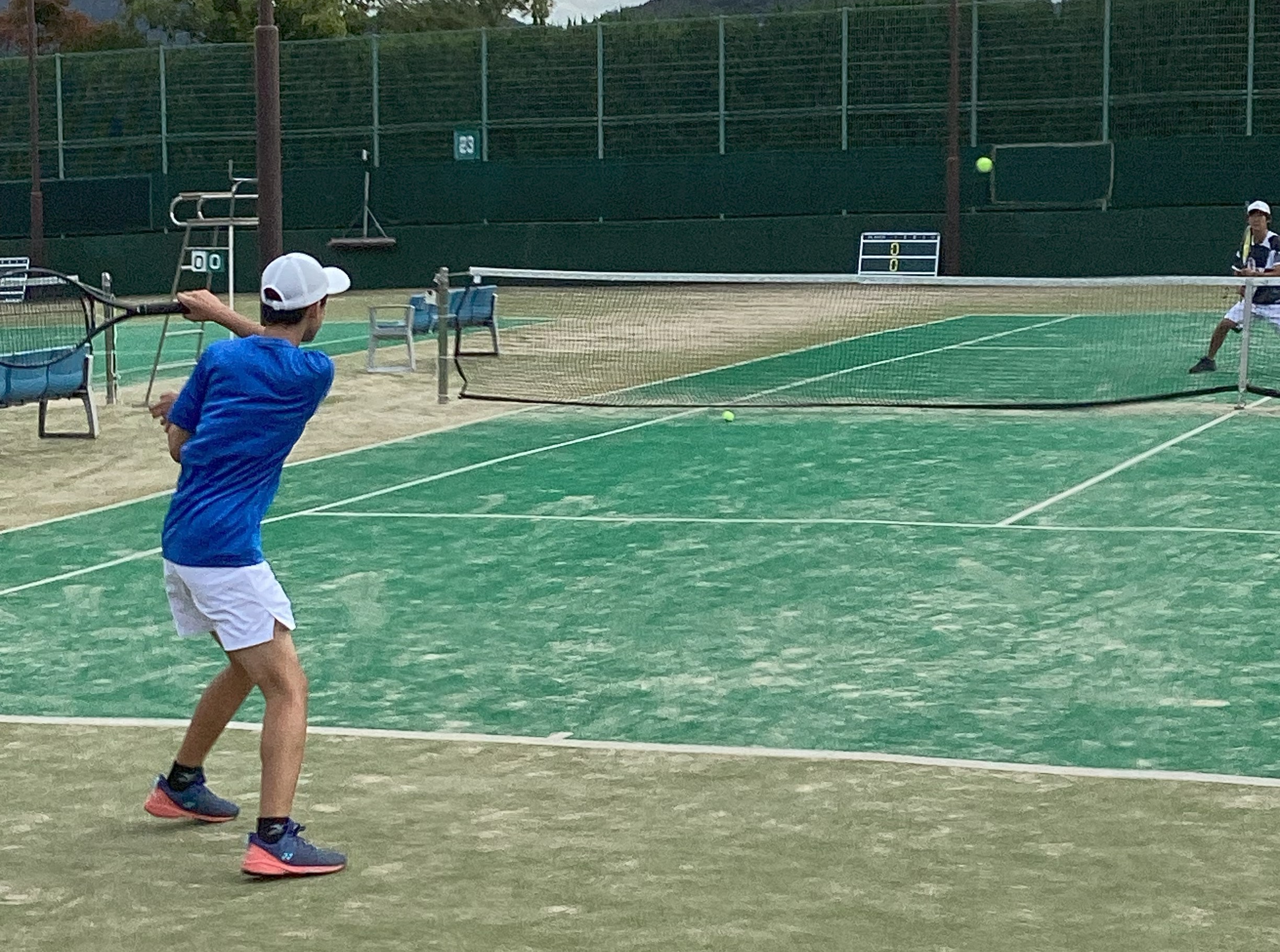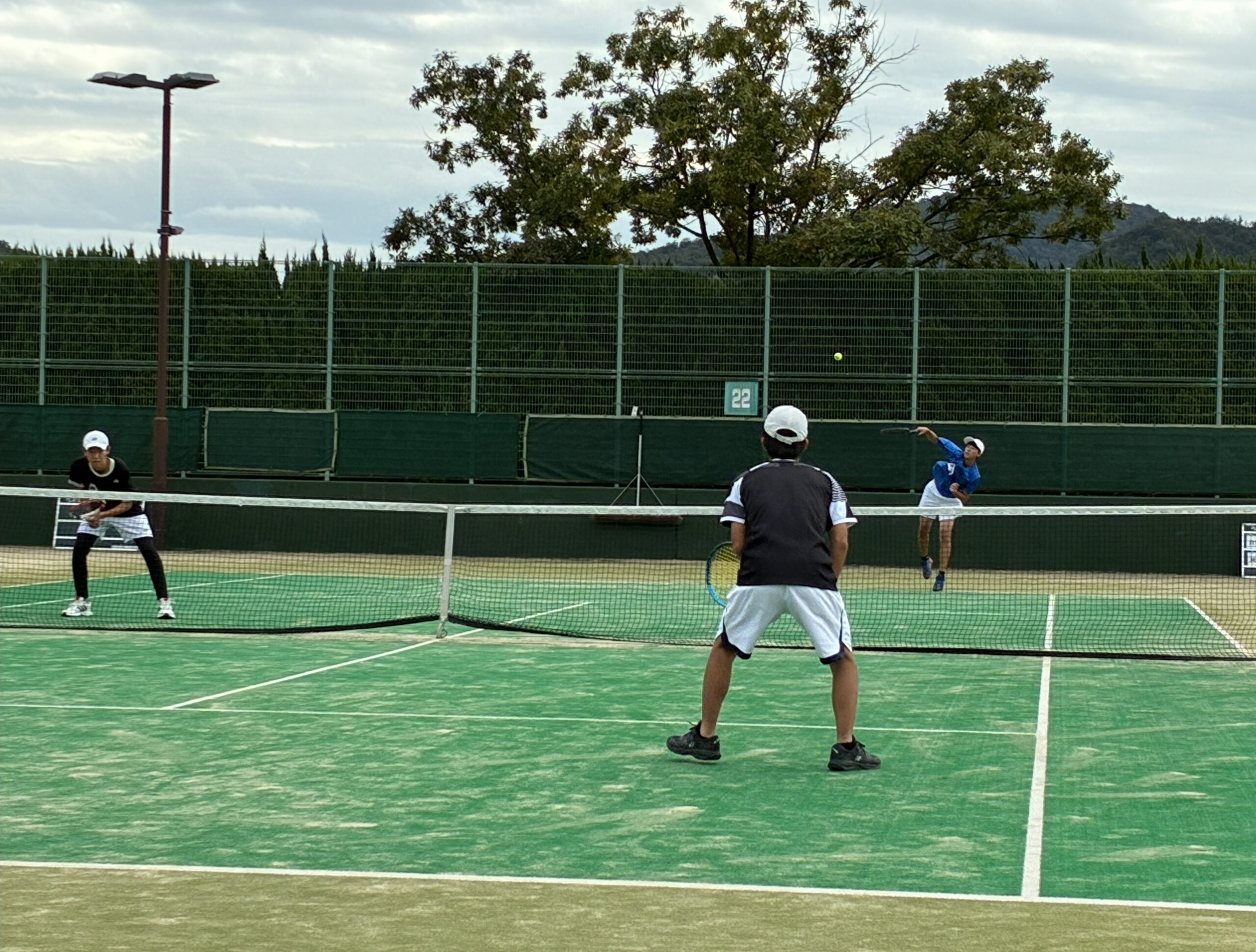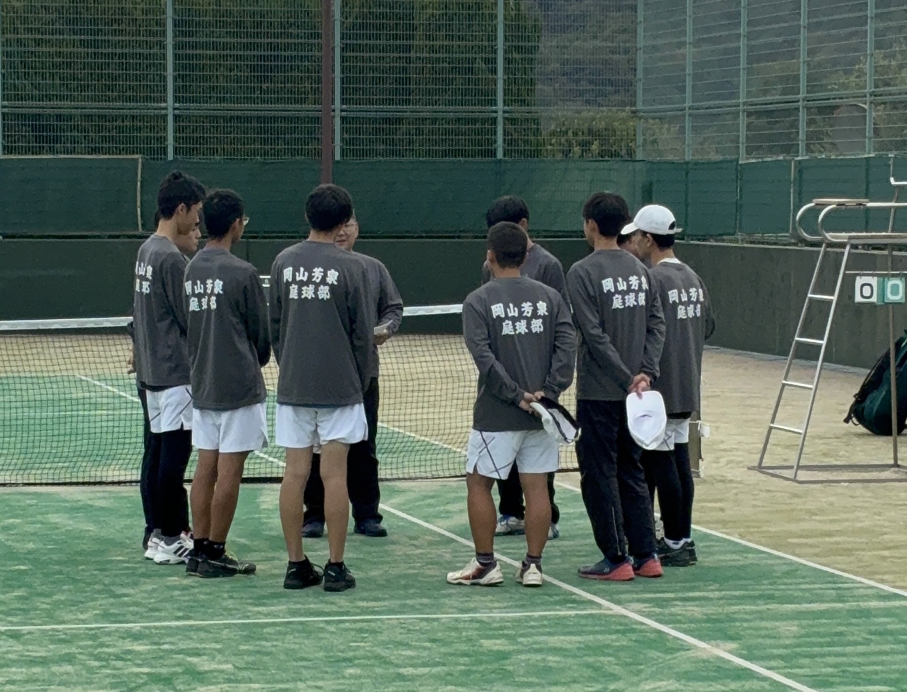 10月25日、備前テニスセンターで選抜高校テニス大会岡山県予選(団体戦)に出場しました。団体戦は、普段行わる個人戦とは異なり、シングルス3試合、ダブルス2試合の計5試合で戦います。団体戦は年2回しか行われないので、部員全員が会場に行きプレーしたり応援したりしてチームを盛り上げるようにしています。