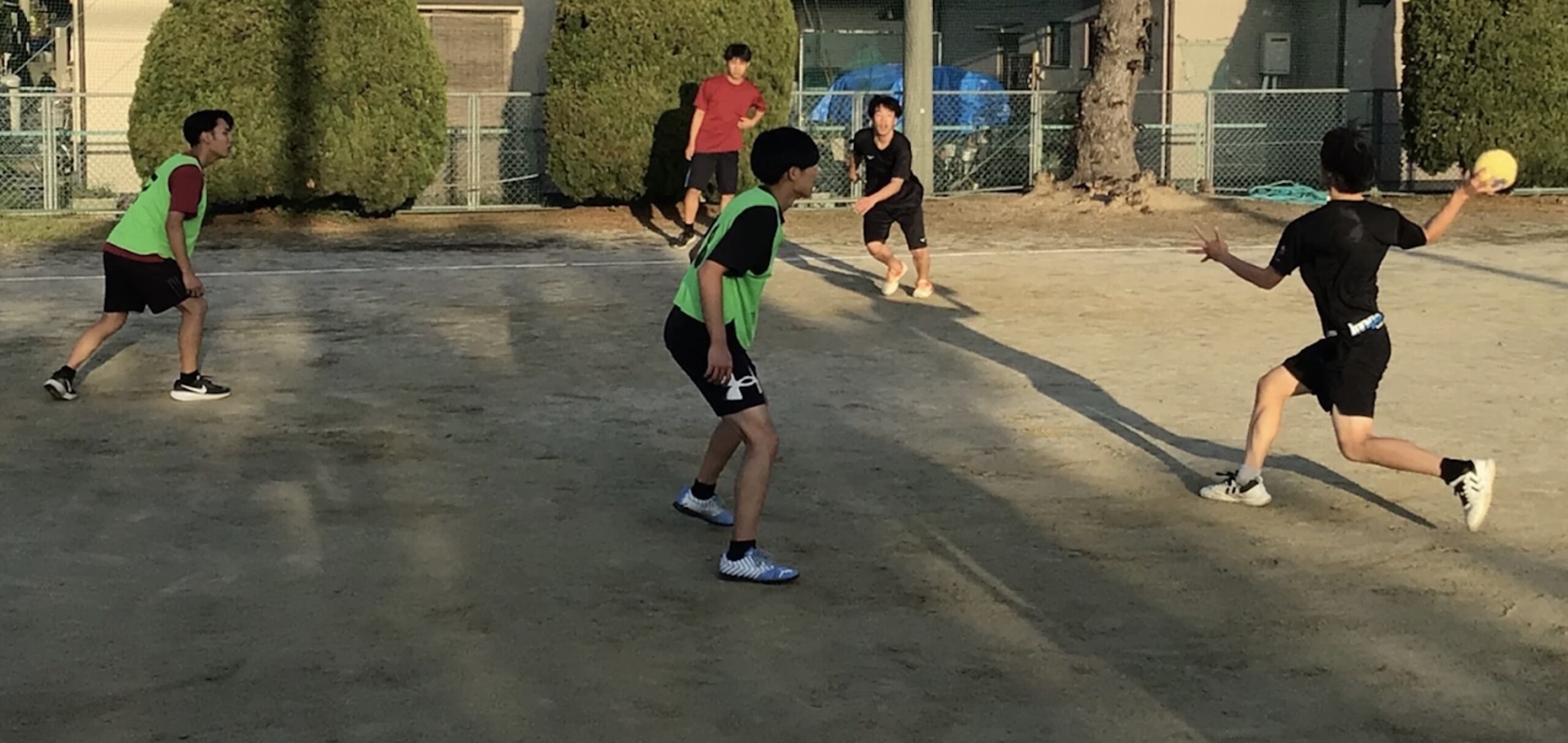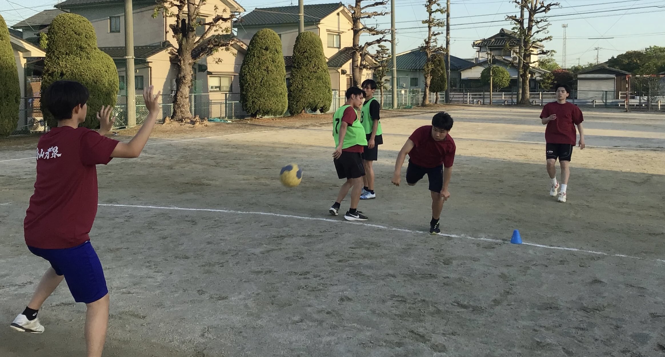 私たちは、2年生5名、1年生10名、マネージャー3名の計18名で活動しています。活動日は基本 的に平日週4日と休日1日です。部員数は多くありませんが、「県総体ベスト4」という目標達成に向けて、日々努力を重ねています。先輩・後輩の垣根なく和気あいあいとした雰囲気の中で、メリハリを大切にしながら楽しく活動しています。